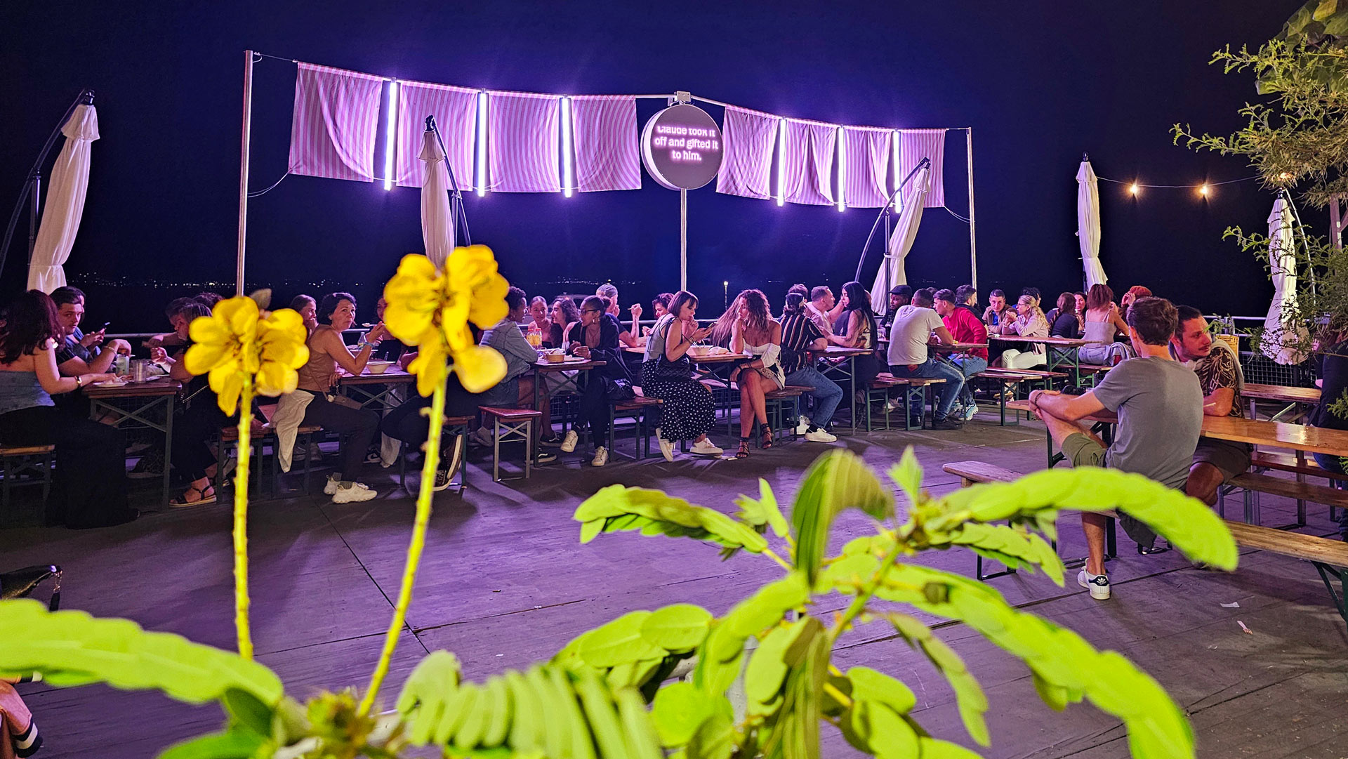 Nous avons imaginé des fixations en aluminium pour que les luminaires, réalisés avec un tube opalin et led RGBW, restent fixes sur les câbles assurant ainsi une sécurité au vent et aux visiteurs.